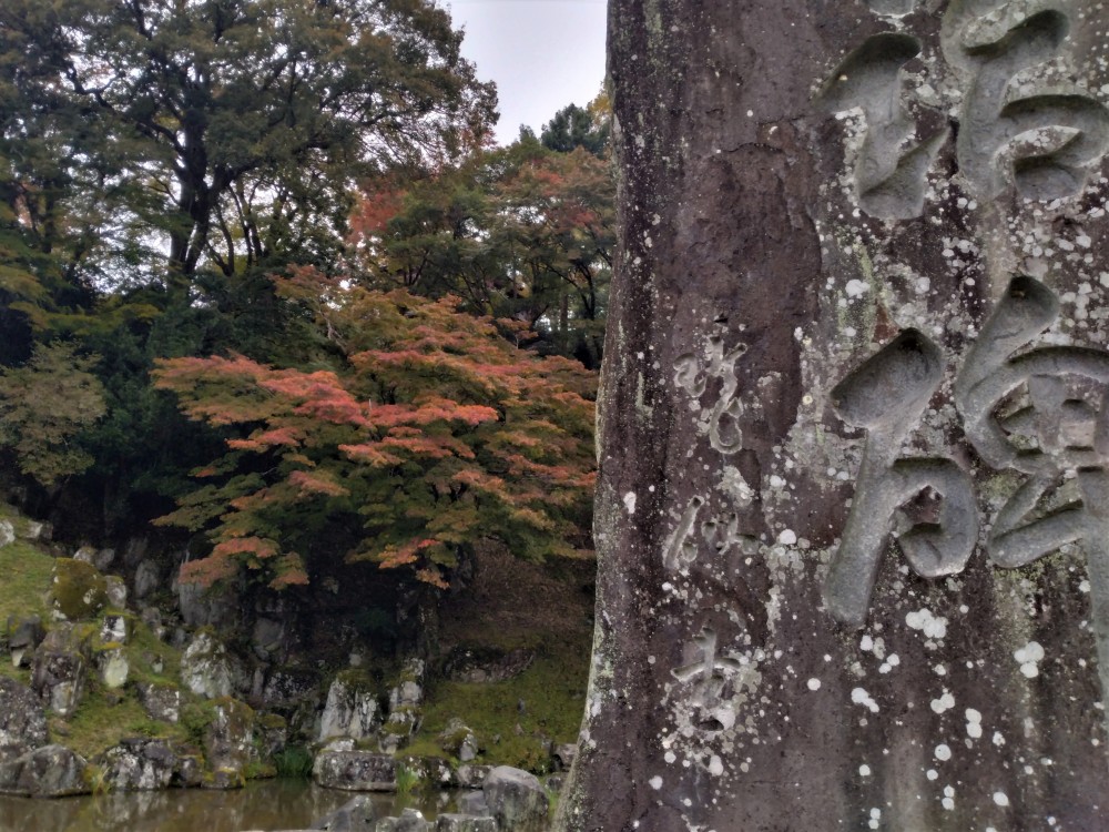 久留島武彦記念館(標高350mぐらい)のお隣の旧久留島氏庭園に紅葉が来るまであと250mぐらいです。